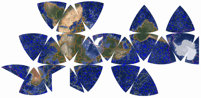 One World Island HVDC Electric Transmission on Dymaxion Map byOWEB Map is convenient but static two-dimensional representation. The flat map provides accurate longitude-latitude coordinates, of specific locations, but North is not “up”. Map is rotated, if desired, so that any one of the twenty triangles aligns North. This analog reference is transferred onto the dynamic GE Google Earth Pro application starting 2005. GE is preferably the principal ocean energy marine spatial planning and implementation platform. Its accuracy, adaptability, and accessibility garner a global user base. In addition to real time satellite observations, active users can contribute detailed local updates to the common application. ![]() Dymaxion Map - Google Earth - HVDC - OWEB IntegrationAnticipated geodetic anomalies of the flat map are revealed in the Google Earth spherical view. Conforming the twenty triangles of icosahedron’s five-folded pentagonal sides to flatness, or sphere shape, produces most angle deviation at each triangle’s center and corners. Corner OWEB (blue) grid placement is avoided, if possible, yet two of twenty vertices necessarily have them. Buckminster Fuller averaged the difference between corners, and their midpoints, to evenly distribute 5% spherical “error” throughout the Dymaxion Map. For OWEB, the vertices render sufficiently large nodes to apply hexagonal and equilateral triangular grids within pentagonal frames. The percentage deviation is minimal, at a more granular real-world scale, and evenly distributed throughout open spaces between OWEBs. GE OWEB Dymaxion Map- 7,500 Mile Altitude (click for larger view)Since 2012 start, GE Google Earth provides flexible template for accurately planning OWEB Ocean Wave Energy weBs’ position coordinates, site water depths, anchorage locations, and distance to land energy grids. Plainly evident is much potential for incubating, implementing, and expanding wave energy industrialization. An aim is to identify connections to electric and gas pathways. Global coastal and cross-continent infrastructure is generally assessed. HVDC high voltage direct current (yellow) power lines follow Buckminster Fuller 1954 proposed connections to transmission corridors, transfer stations, and existing plants of the mostly coastal One World Island HVDC high voltage direct current electrical grid. Hydrogen Hub and H2 storage locations often coincide with operational and former oil and gas facilities. Gas lines (red) represent piped or packeted hydrogen distribution routes that closely parallel HVDC grids. Constructions are proposed near some less inhabited polar, desert, and mountain regions having undeveloped, incomplete, or unrefined assets. Supplemental lines (red/white) encircle both polar regions for cold hydrogen storage and water management. Additional to the 100 red dots representing 1% population locations, Iin the Humanity folder, night lights view reveals other hotspots possibly requiring additional HVDC microgrids, transmission lines, or packet hydrogen delivery over land and sea. GE OWEB application enables accurate representations of changing conditions. The platform displays worldwide OWEC® Ocean Wave Energy Converter deployment sites and Ocean Wave Energy weB growth stages. Major OWEB locations are in international waters. The remainder are carefully positioned in EEZ exclusive economic zones and national waters. Siting influences include environmental conditions, annual wave energy, water depth correlation to MHK extraction cost, bottom-laid or trenched cable landfall connections with onshore HVDC high voltage direct current electric lines, thermal power facilities or decommissioned seawater cooled nuclear plants, and other factors. OWEB arrays can be reconfigured and adapted to shifting boundary designations near marine protected areas, for example. In some areas OWEB triangles are added, temporarily colored green, until acceptance to the default blue. Removed blue triangles are colored red. Multi-colored OWEB, the underlay grid, several red grid alignment lines, and new shortest distance shipping lane distinctions became nearly unmanageable until December 2025. Then red triangles and other elements were separated from finished work. They are saved in “Non-Public” folders for potential future use. With newfound clarity the green triangle locations are finely adjusted and changed to blue. After 14 years of development, still having incomplete land electric and gas line specifications, large portion of the 6.8 MB OWECO OWEB .kmz file is available for download: Google Earth OWEB ApplicationInstructions for OWEB Ocean Wave Energy weB on GE Google Earth- Caution: Do not select the OWECO OWEB folder. Check marking this folder opens all files, renders confusion, and slows the application. Do not delete contents. GE OWEB drop down “My Places” menu interacts with sub-folders. Data is best viewed if other “My Places” folder contents are deselected but not deleted. Default view comprises checked folders. Deselecting “Plants” speeds up navigation in the global view. ![]() Google Earth OWEB Places LibraryMSP Marine Spatial Planning expresses value in providing a comprehensive template for identifying all technology-attractive regions, noted above, that include consistently energetic wave fields, densely populated regions, dual application as breakwaters, for islands’ offshore remote power, off-grid regions, select sea mounts, and hypoxic zones. As important for MSP analysis is specification of avoidance areas where generally most large-scale renewable ocean energy systems should not be installed. Diverse natural and human activity prevail nearshore. At such venues bottom friction and turbulence also reduce wave energy. With exception of submerged power tethers to land and specific application spots, excluded from the grid are nearly all national waters, major, minor, and service shipping lanes, island nearshore waters, areas of 