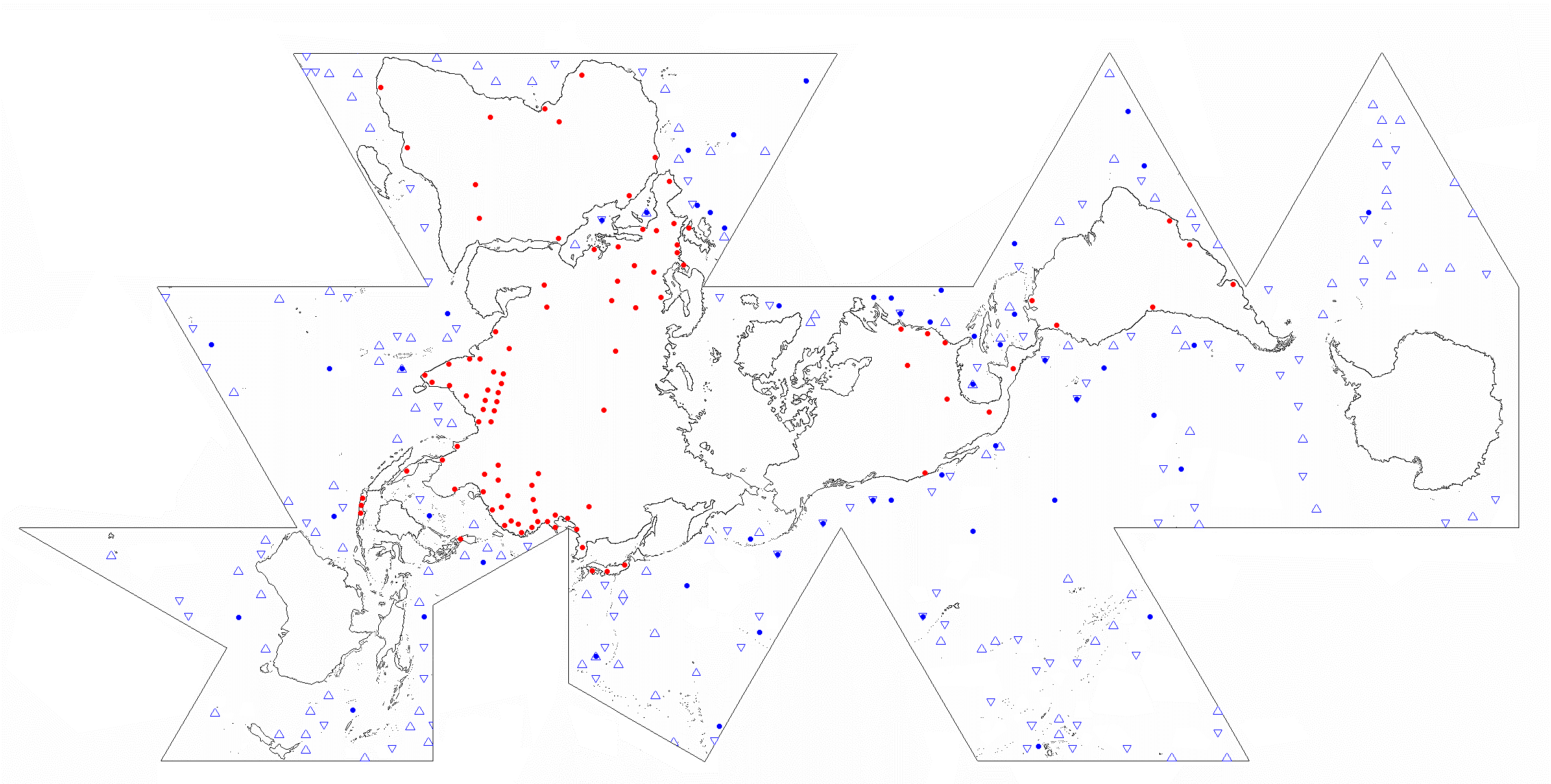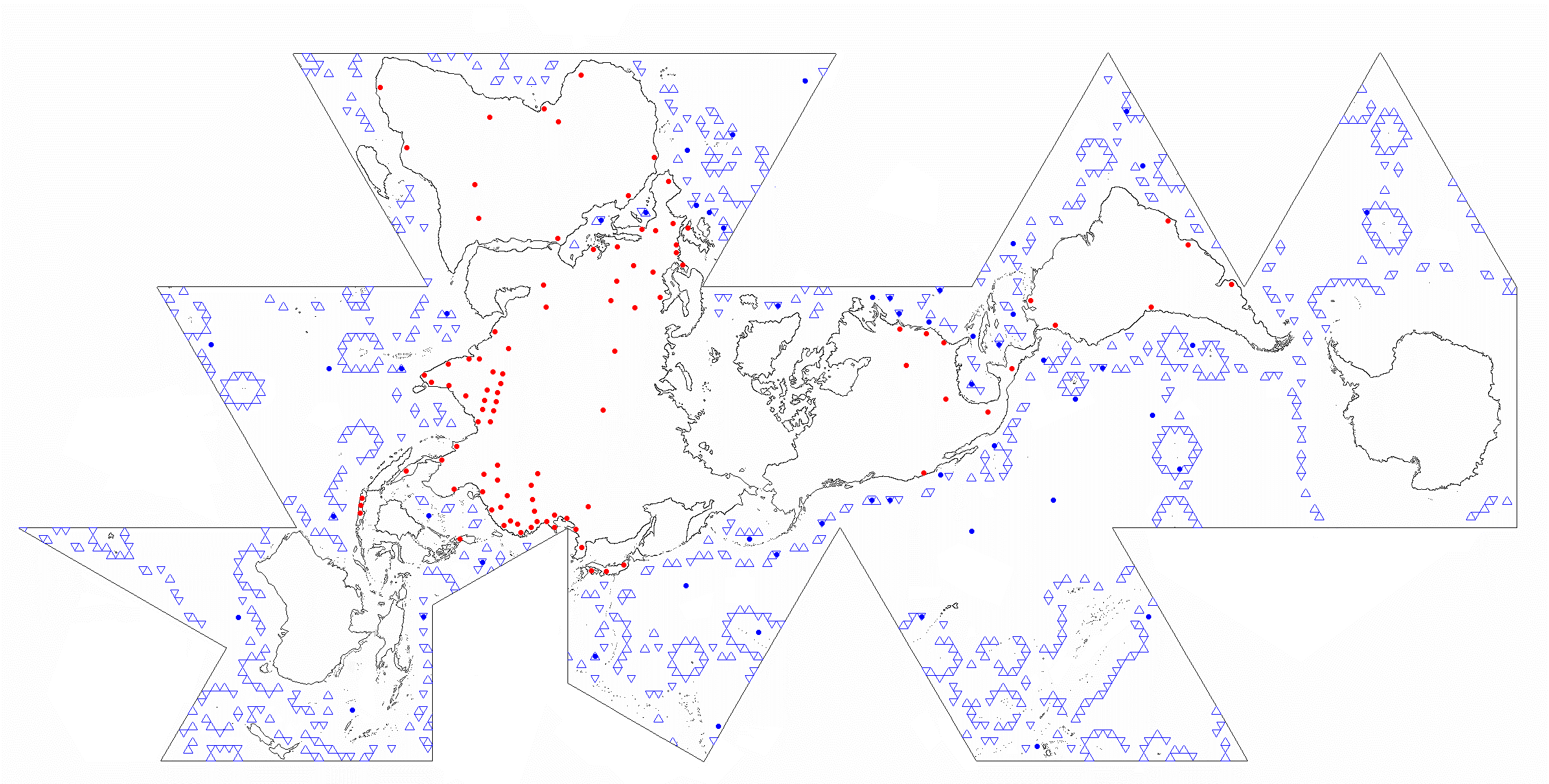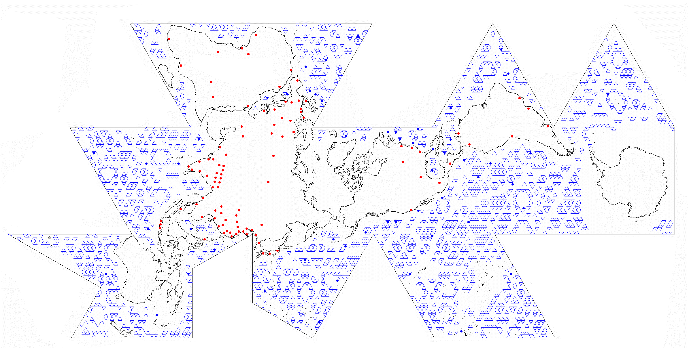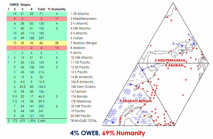 One World Island HVDC Electric Transmission on Dymaxion Map byOWEB Map is convenient but static two-dimensional representation. The flat map provides accurate longitude-latitude coordinates, of specific locations, but North is not “up”. Map is rotated, if desired, so that any one of the twenty triangles aligns North. This analog reference is transferred onto the dynamic GE Google Earth Pro application starting 2005. GE is preferably the principal global ocean energy marine spatial planning and implementation platform. Its accuracy, adaptability, and free availability garner a very large user base. ![]() Dymaxion Map - Google Earth - HVDC - OWEB IntegrationAnticipated geodetic anomalies of the flat map are revealed in the Google Earth spherical view. Conforming the twenty triangles of icosahedron’s five-folded pentagonal sides to flatness, or sphere shape, produces most angle deviation at each triangle’s center and corners. Corner OWEB (blue) grid placement is avoided, if possible, yet two of twenty vertices necessarily have them. Buckminster Fuller averaged the difference between corners, and their midpoints, to evenly distribute 5% spherical “error” throughout the Dymaxion Map. For OWEB, the vertices render sufficiently large nodes to apply hexagonal and equilateral triangular grids within pentagonal frames. The percentage deviation is minimal, at a more granular real-world scale, and evenly distributed throughout open spaces between OWEBs. GE OWEB Dymaxion Map- 7,500 Mile Altitude (click for larger view)Global coastal and cross-continent energy infrastructure is generally assessed and proposed. Within existing conditions is much potential for incubating and expanding wave energy industrialization. GE OWEB displays worldwide OWEC® Ocean Wave Energy Converter deployment sites and Ocean Wave Energy weB growth stages. OWEB major locations are in international waters. The remainder are carefully sited in EEZ exclusive economic zones and national waters. Siting factors include annual wave energy, water depth correlation to MHK extraction cost, bottom-laid or trenched cable landfall connections with onshore HVDC high voltage direct current electric lines, thermal power facilities or decommissioned seawater cooled nuclear plants, and other factors. HVDC (yellow) power lines follow Buckminster Fuller 1954 proposed connections to transmission corridors, transfer stations, and existing plants of the mostly coastal One World Island HVDC electrical grid. Gas lines (red) represent piped or packeted hydrogen distribution routes that closely parallel HVDC grids. Hydrogen Hub and H2 storage locations often coincide with existing and former oil and gas facilities. Night lights view reveals other hotspots possibly requiring additional HVDC microgrids, transmission line pathways, or packet hydrogen delivery over land and sea. GE OWEB drop down “My Places” menu interacts with sub-folders. Check marking this folder opens all files, renders confusion, and slows the application. Data is best viewed if other “My Places” folder contents are deselected but not deleted. Default view comprises checked folders. Deselecting “Plants” speeds up navigation in the global view. ![]() Google Earth OWEB Places LibraryMarine Spatial Planning expresses value in providing a comprehensive template for identifying all technology-attractive regions, noted above, that include consistently energetic wave fields, densely populated regions, dual application as breakwaters, for islands’ offshore remote power, off-grid regions, select sea mounts, and hypoxic zones. As important for spatial analysis is specification of avoidance areas where generally most large-scale renewable ocean energy systems should not be installed. Diverse natural and human activity prevail nearshore. At such venues bottom friction and turbulence also reduce wave energy. With exception of submerged power tethers to land and specific application spots, excluded from the grid are nearly all national waters, major, minor, and service shipping lanes, island nearshore waters, areas of persistent doldrums or very strong currents, garbage patches, EEZ Exclusive Economic Zones, and sea ice. Substantial exclusion zones are in polar sea ice regions and possibly the less energetic horse latitudes. Our growing ocean imprints, particularly involving pollution, vessel traffic, and fishery, led to creation of MPA Marine Protected Areas. Clear grounds, paths, and much leeway are mandatory to Cetacean and Mammalian breeding, breaching distributions, and migration routes. Of most concern are whale, porpoise, and dolphin interactions among submerged planar arrays and moorings. Large array OWEB edges and corner openings coincide wide margins between coastal ecosystems, MPA’s, habitats, coral reefs, spawning areas, travel ways, and other indigenous activities. Dual use forms human activity exclusion zones and reefing platforms that counter present trends toward species overfishing and extinction. ![]() Indian Ocean OWEB (blue), HVDC lines (yellow), H2 transport (red), MPA (white), shipping (green), wave data (gray dot),1% humanity (red dot) Modularly connected OWEC® Ocean Wave Energy Converter groups are linearly arranged, like fences, as BtoN Barriers to Navigation about Marine Protected Areas. BtoN can help to limit our endeavors, about region margins, and deter vessels from entering MPA’s without greatly impeding practical shipping routes (green). Example shows a ring-like OWEB Ocean Wave Energy weB BtoN surrounding most of Indian Ocean’s Chagos Archipelago MPA (white). Or relatively slender configurations span outside of long MPA boundaries as at Northwestern Hawaiian Islands. Practicalities are outlined in the Research section. The Google Earth land and marine spatial planning platform supports engineering digital twins. These are effective, in development stages, for validating technology simulations and generating holistic process management 