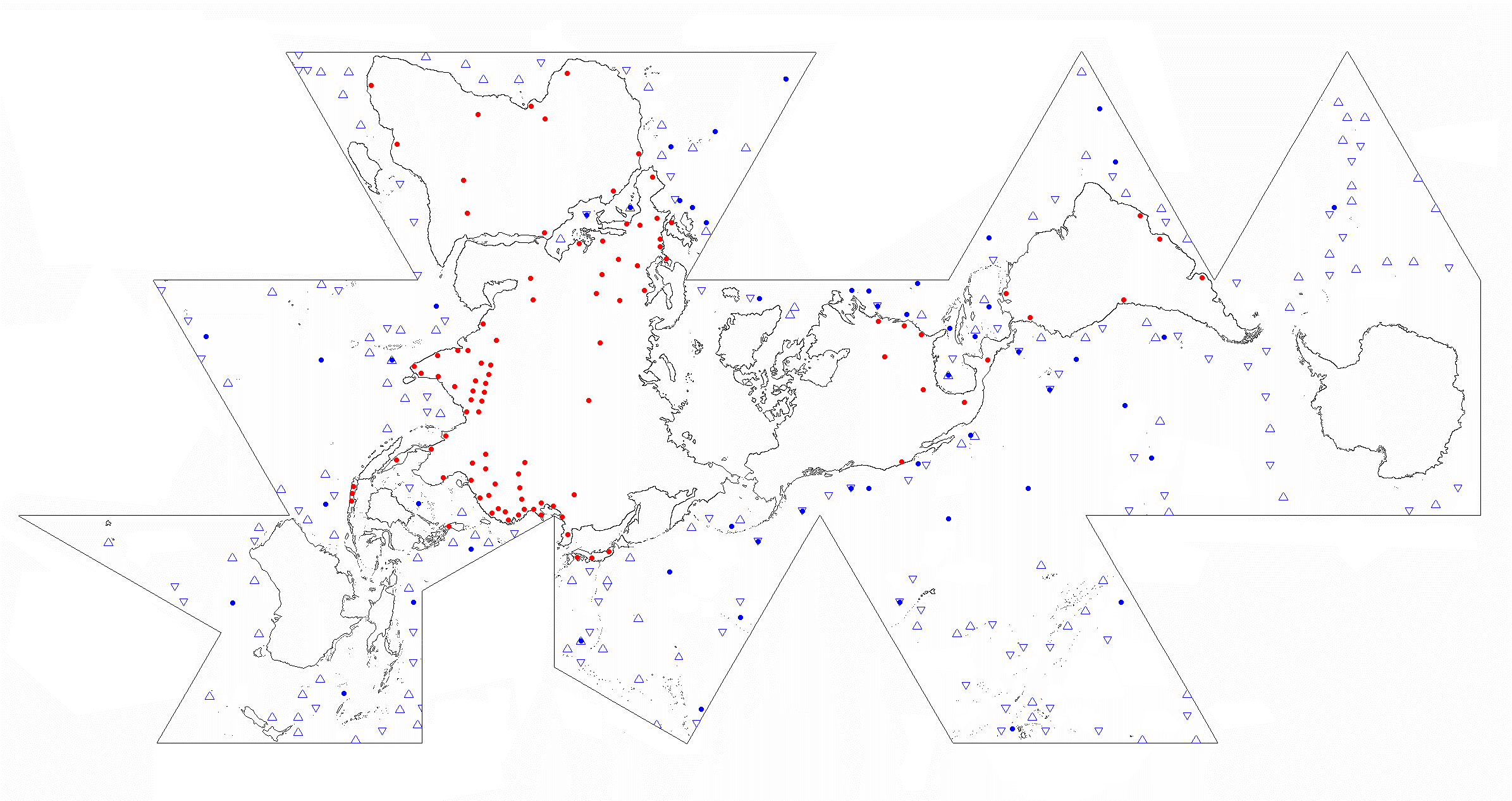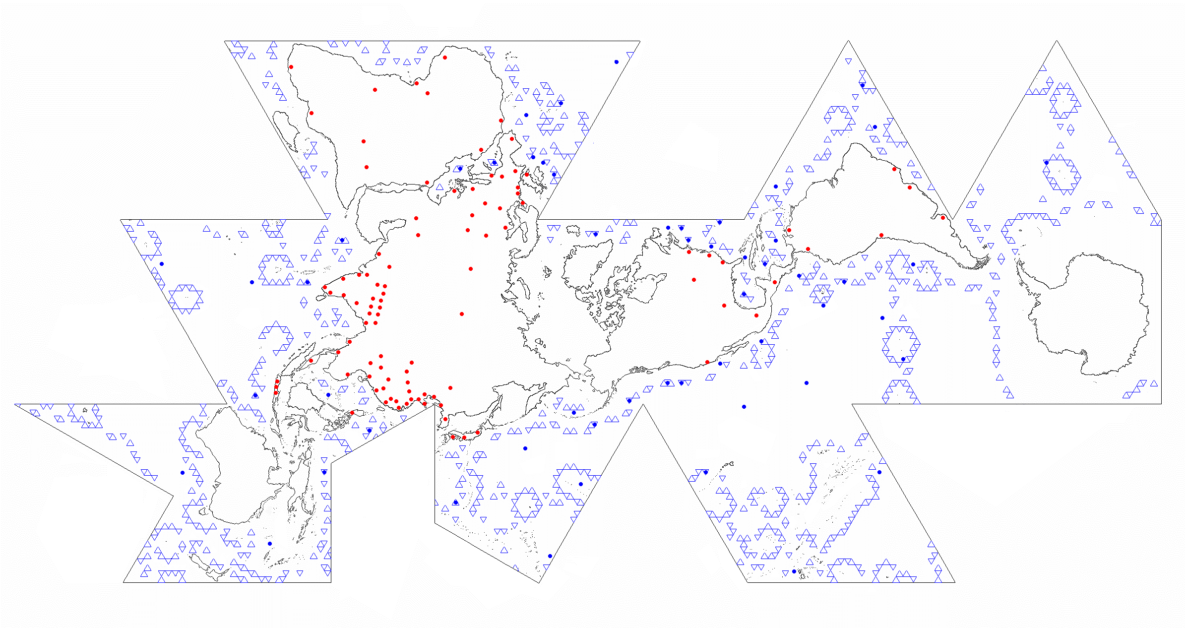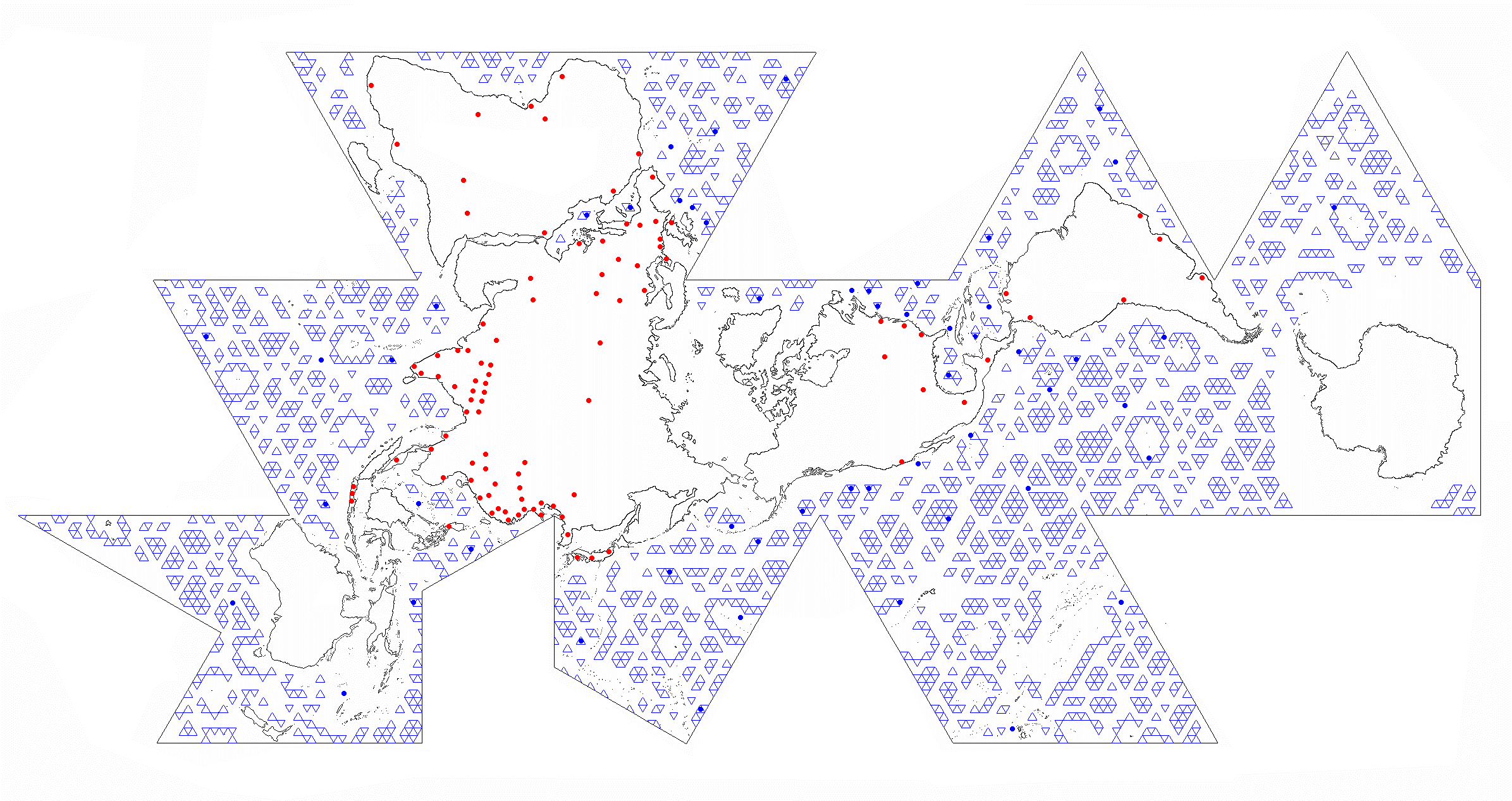 One World Island HVDC Electric Transmission on Dymaxion Map byOWEB Map is convenient but static two-dimensional representation. The flat map provides accurate longitude-latitude coordinates, of specific locations, but North is not “up”. Map is rotated, if desired, so that any one of the twenty triangles aligns North. This analog reference is transferred onto the dynamic GE Google Earth Pro application starting 2005. GE is preferably the principal global ocean energy marine spatial planning and implementation platform. Its accuracy, adaptability, and free availability garner a very large user base. ![]() Dymaxion Map - Google Earth - HVDC - OWEB IntegrationAnticipated geodetic anomalies of the flat map are revealed in the Google Earth spherical view. Conforming the twenty triangles of icosahedron’s five-folded pentagonal sides to flatness, or sphere shape, produces most angle deviation at each triangle’s center and corners. Corner OWEB (blue) grid placement is avoided, if possible, yet two of twenty vertices necessarily have them. Buckminster Fuller averaged the difference between corners, and their midpoints, to evenly distribute 5% spherical “error” throughout the Dymaxion Map. For OWEB, the vertices render sufficiently large nodes to apply hexagonal and equilateral triangular grids within pentagonal frames. The percentage deviation is minimal, at a more granular real-world scale, and evenly distributed throughout open spaces between OWEBs. GE OWEB Dymaxion Map- 7,500 Mile Altitude (click for larger view)Global coastal and cross-continent energy infrastructure is generally assessed and proposed. Within existing conditions is much potential for incubating and expanding wave energy industrialization. GE OWEB displays worldwide OWEC® Ocean Wave Energy Converter deployment sites and Ocean Wave Energy weB growth stages. OWEB major locations are in international waters. The remainder are carefully sited in EEZ exclusive economic zones and national waters. Siting factors include annual wave energy, water depth correlation to MHK extraction cost, bottom-laid or trenched cable landfall connections with onshore HVDC high voltage direct current electric lines, thermal power facilities or decommissioned seawater cooled nuclear plants, and other factors. HVDC (yellow) power lines follow Buckminster Fuller 1954 proposed connections to transmission corridors, transfer stations, and existing plants of the mostly coastal One World Island HVDC electrical grid. Gas lines (red) represent piped or packeted hydrogen distribution routes that closely parallel HVDC grids. Hydrogen Hub and H2 storage locations often coincide with existing and former oil and gas facilities. Night lights view reveals other hotspots possibly requiring additional HVDC microgrids, transmission line pathways, or packet hydrogen delivery over land and sea. GE OWEB drop down “My Places” menu interacts with sub-folders. Check marking this folder opens all files, renders confusion, and slows the application. Data is best viewed if other “My Places” folder contents are deselected but not deleted. Default view comprises checked folders. Deselecting “Plants” speeds up navigation in the global view. ![]() Google Earth OWEB Places LibraryMarine Spatial Planning expresses value in providing a comprehensive template for identifying all technology-attractive regions, noted above, that include consistently energetic wave fields, densely populated regions, dual application as breakwaters, for islands’ offshore remote power, off-grid regions, select sea mounts, and hypoxic zones. As important for spatial analysis is specification of avoidance areas where generally most large-scale renewable ocean energy systems should not be installed. Diverse natural and human activity prevail nearshore. At such venues bottom friction and turbulence also reduce wave energy. With exception of submerged power tethers to land and specific application spots, excluded from the grid are nearly all national waters, major, minor, and service shipping lanes, island nearshore waters, areas of persistent doldrums or very strong currents, garbage patches, EEZ Exclusive Economic Zones, and sea ice. Substantial exclusion zones are in polar sea ice regions and possibly the less energetic horse latitudes. Our growing ocean imprints, particularly involving pollution, vessel traffic, and fishery, led to creation of MPA Marine Protected Areas. Clear grounds, paths, and much leeway are mandatory to Cetacean and Mammalian breeding, breaching distributions, and migration routes. Of most concern are whale, porpoise, and dolphin interactions among submerged planar arrays and moorings. Large array OWEB edges and corner openings coincide wide margins between coastal ecosystems, MPA’s, habitats, coral reefs, spawning areas, travel ways, and other indigenous activities. Dual use forms human activity exclusion zones and reefing platforms that counter present trends toward species overfishing and extinction. ![]() Indian Ocean OWEB (blue), HVDC lines (yellow), H2 transport (red), MPA (white), shipping (green), wave data (gray dot),1% humanity (red dot) Modularly connected OWEC® Ocean Wave Energy Converter groups are linearly arranged, like fences, as BtoN Barriers to Navigation about Marine Protected Areas. BtoN can help to limit our endeavors, about region margins, and deter vessels from entering MPA’s without greatly impeding practical shipping routes (green). Example shows a ring-like OWEB Ocean Wave Energy weB BtoN surrounding most of Indian Ocean’s Chagos Archipelago MPA (white). Or relatively slender configurations span outside of long MPA boundaries as at Northwestern Hawaiian Islands. Practicalities are outlined in the Research section. The Google Earth land and marine spatial planning platform supports engineering digital twins. These are effective, in development stages, for validating technology simulations and generating holistic process management 